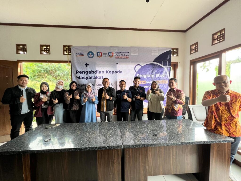 Bogor – Cyber University melalui Program Studi Sistem dan Teknologi Informasi sukses melaksanakan kegiatan Pengabdian kepada Masyarakat (PkM) bersama Koperasi Unit Desa (KUD) Giri Tani, Cisarua, Bogor. Program ini mengusung tema Digitalisasi Peternakan dan Pembiayaan untuk Peternak, dengan tujuan meningkatkan kapasitas kelembagaan koperasi, literasi keuangan, serta penguatan akses permodalan bagi para peternak sapi perah.